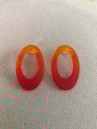 BRAND NEW HOOPS!! Gorgeous hoops in either blue/green, orange/magenta or smoky colourway. They sit front facing as opposed to around the ear for a contemporary take on the classic hoop! Earrings come complete with sterling silver posts and butterfly backs.