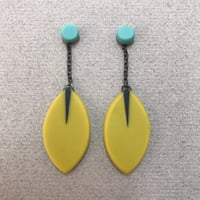 Lovely simple colourful earrings in limey yellow, mint and charcoal grey!