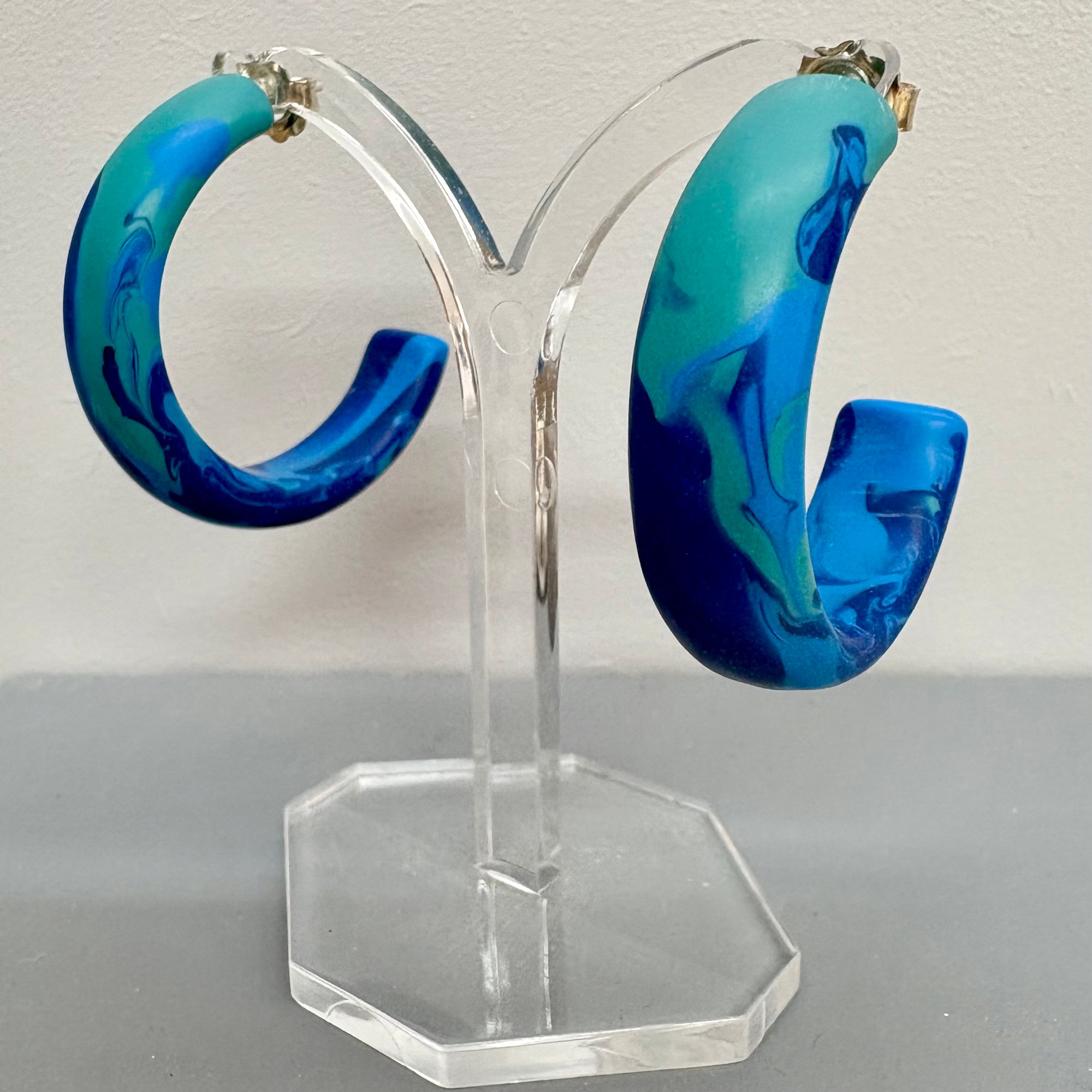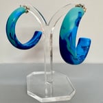 NEW INK RANGE! These chunky opaque blue/green resin hoops have a pattern reminiscent of marble. Each pair has its own individual organic pattern, due to the hand poured process into silicone mould! Sterling silver posts and large butterfly backs.