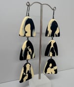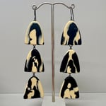 Black and cream marbled earrings, part of my new INK range! Three arc shaped units hang from an oxidised silver hook. Each pair is unique in its pattern due the the hand pouring casting process!